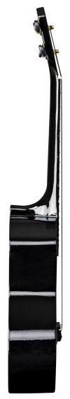 Корпус простой гитары укулеле концерт Baton ROUGE NOIR BY BR NU1C - BK выполнен из клёна: это недорогой и качественный материал для гитар, и из него же сделан гриф, и даже накладка на гриф выполнена из цветного клёна. Отделка гитары более спокойная, это классический черный цвет в глянце. Колковый механизм – открытый в гитарном стиле с черными лепестками. Мензура укулеле концерт составляет 375 мм. Это позволяет иметь больше ладов, вместо традиционных двенадцати: обычно их количество у концертных укулеле варьируется от 17 до 19. Верхний порожек – традиционный 35 мм.